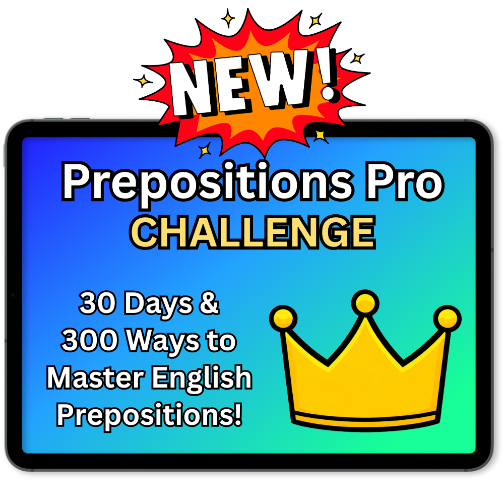 The Prepositions Pro Challenge is a NEW course with daily lessons that focus on learning 300 different ways to use common prepositions in English.